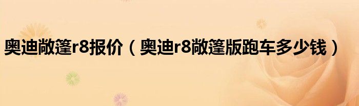 大家好,阳阳来为大家讲解下。奥迪敞篷r8报价,奥迪r8敞篷版跑车多少钱很多人还不知道,现在让我们一起来看看吧!