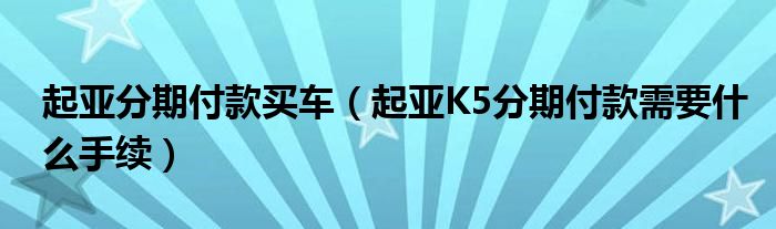 大家好,阳阳来为大家讲解下。起亚分期付款买车,起亚K5分期付款需要什么手续很多人还不知道,现在让我们一起来看看吧!