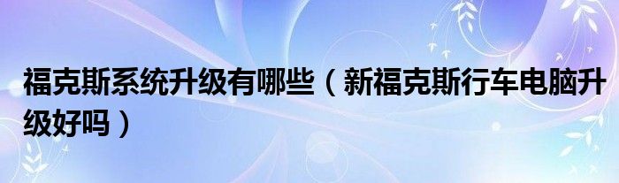 大家好,阳阳来为大家讲解下。福克斯系统升级有哪些,新福克斯行车电脑升级好吗很多人还不知道,现在让我们一起来看看吧!