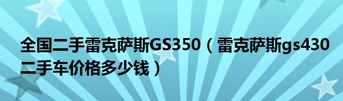 大家好,阳阳来为大家讲解下。全国二手雷克萨斯GS350,雷克萨斯gs430二手车价格多少钱很多人还不知道,现在让我们一起来看看吧!