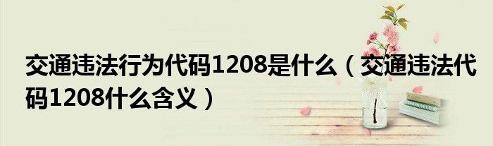 大家好,阳阳来为大家讲解下。交通违法行为代码1208是什么,交通违法代码1208什么含义很多人还不知道,现在让我们一起来看看吧!
