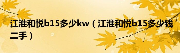 大家好,阳阳来为大家讲解下。江淮和悦b15多少kw,江淮和悦b15多少钱二手很多人还不知道,现在让我们一起来看看吧!