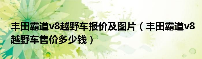 大家好,阳阳来为大家讲解下。丰田霸道v8越野车报价及图片,丰田霸道v8越野车售价多少钱很多人还不知道,现在让我们一起来看看吧!