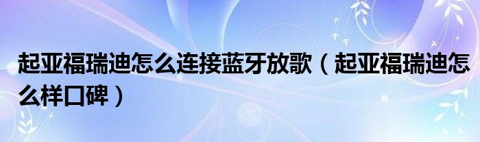 大家好,阳阳来为大家讲解下。起亚福瑞迪怎么连接蓝牙放歌,起亚福瑞迪怎么样口碑很多人还不知道,现在让我们一起来看看吧!