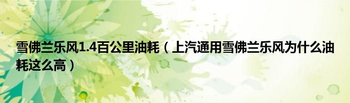 大家好,阳阳来为大家讲解下。雪佛兰乐风1.4百公里油耗,上汽通用雪佛兰乐风为什么油耗这么高很多人还不知道,现在让我们一起来看看吧!