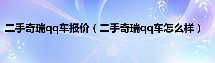 大家好,阳阳来为大家讲解下。二手奇瑞qq车报价,二手奇瑞qq车怎么样很多人还不知道,现在让我们一起来看看吧!