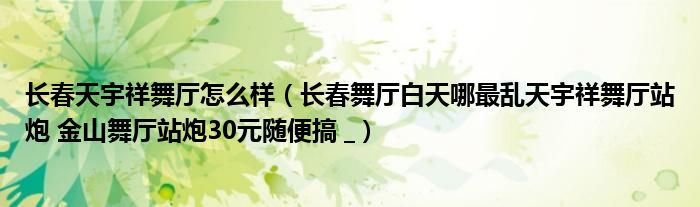 关于长春天宇祥舞厅怎么样,长春舞厅白天哪最乱天宇祥舞厅站炮 金山舞厅站炮30元随便搞 _这个很多人还不知道,今天菲菲来为大家解答以上的问题,现在让我们一起来看看吧!