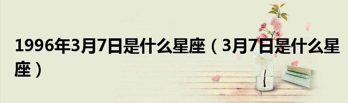 关于1996年3月7日是什么星座,3月7日是什么星座这个很多人还不知道,今天菲菲来为大家解答以上的问题,现在让我们一起来看看吧!