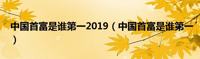 关于中国首富是谁第一2019,中国首富是谁第一这个很多人还不知道,今天菲菲来为大家解答以上的问题,现在让我们一起来看看吧!