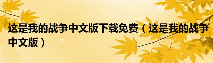 关于这是我的战争中文版下载免费,这是我的战争中文版这个很多人还不知道,今天菲菲来为大家解答以上的问题,现在让我们一起来看看吧!
