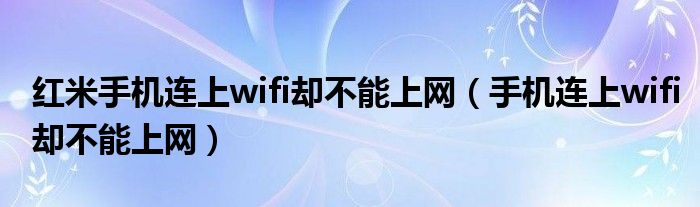 关于红米手机连上wifi却不能上网,手机连上wifi却不能上网这个很多人还不知道,今天菲菲来为大家解答以上的问题,现在让我们一起来看看吧!