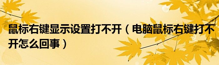 关于鼠标右键显示设置打不开,电脑鼠标右键打不开怎么回事这个很多人还不知道,今天菲菲来为大家解答以上的问题,现在让我们一起来看看吧!