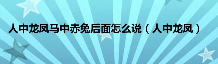 人中龙凤马中赤兔后面怎么说(人中龙凤)