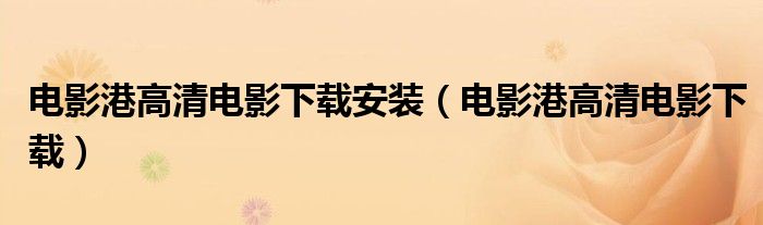 电影港高清电影下载安装(电影港高清电影下载)