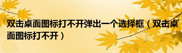 关于双击桌面图标打不开弹出一个选择框,双击桌面图标打不开这个很多人还不知道,今天菲菲来为大家解答以上的问题,现在让我们一起来看看吧!