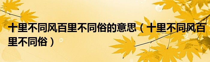 关于十里不同风百里不同俗的意思,十里不同风百里不同俗这个很多人还不知道,今天菲菲来为大家解答以上的问题,现在让我们一起来看看吧!