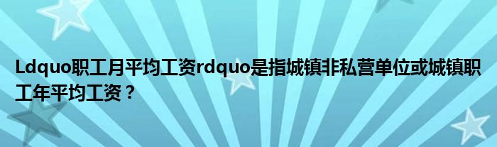 关于Ldquo职工月平均工资rdquo是指城镇非私营单位或城镇职工年平均工资?这个很多人还不知道,今天菲菲来为大家解答以上的问题,现在让我们一起来看看吧!