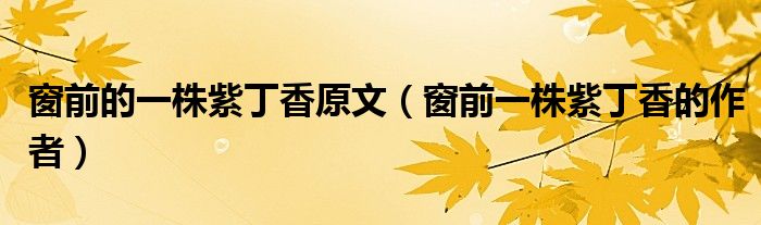关于窗前的一株紫丁香原文,窗前一株紫丁香的作者这个很多人还不知道,今天菲菲来为大家解答以上的问题,现在让我们一起来看看吧!