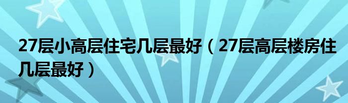 27层小高层住宅几层最好(27层高层楼房住几层最好)