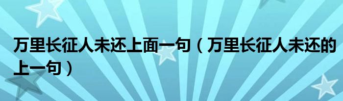 关于万里长征人未还上面一句,万里长征人未还的上一句这个很多人还不知道,今天菲菲来为大家解答以上的问题,现在让我们一起来看看吧!