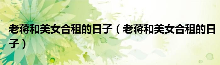 关于老蒋和美女合租的日子,老蒋和美女合租的日子这个很多人还不知道,今天菲菲来为大家解答以上的问题,现在让我们一起来看看吧!