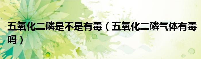 关于五氧化二磷是不是有毒,五氧化二磷气体有毒吗这个很多人还不知道,今天菲菲来为大家解答以上的问题,现在让我们一起来看看吧!