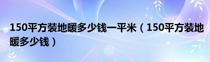 150平方装地暖多少钱一平米(150平方装地暖多少钱)