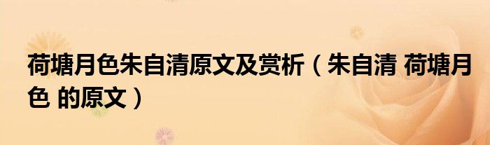 关于荷塘月色朱自清原文及赏析,朱自清 荷塘月色 的原文这个很多人还不知道,今天菲菲来为大家解答以上的问题,现在让我们一起来看看吧!