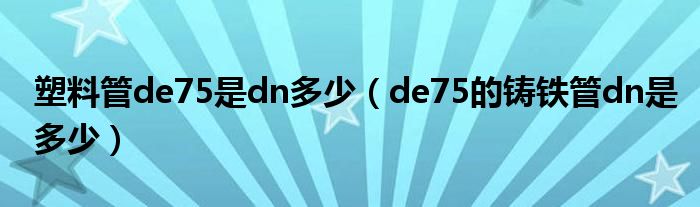 关于塑料管de75是dn多少,de75的铸铁管dn是多少这个很多人还不知道,今天菲菲来为大家解答以上的问题,现在让我们一起来看看吧!