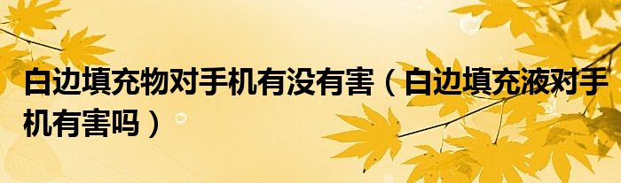 大家好,小晋来为大家解答以下问题,关于白边填充物对手机有没有害,白边填充液对手机有害吗很多人还不知道,今天让我们一起来看看吧!