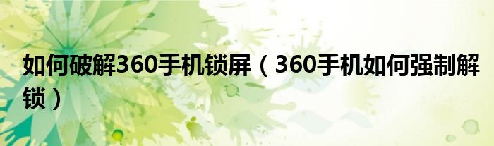 如何破解360手机锁屏(360手机如何强制解锁)