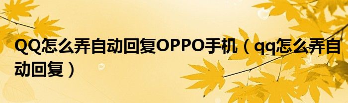大家好,小晋来为大家解答以下问题,关于QQ怎么弄自动回复OPPO手机,qq怎么弄自动回复很多人还不知道,今天让我们一起来看看吧!
