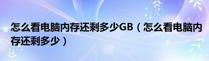 关于怎么看电脑内存还剩多少GB,怎么看电脑内存还剩多少这个很多人还不知道,今天菲菲来为大家解答以上的问题,现在让我们一起来看看吧!