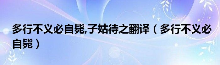关于多行不义必自毙,子姑待之翻译,多行不义必自毙这个很多人还不知道,今天菲菲来为大家解答以上的问题,现在让我们一起来看看吧!
