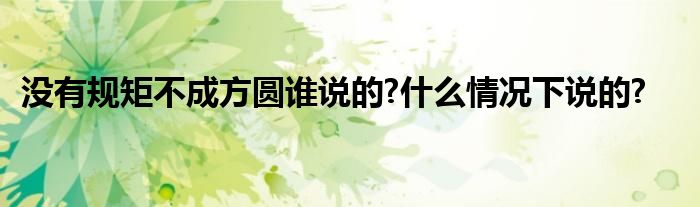 关于没有规矩不成方圆谁说的?什么情况下说的?这个很多人还不知道,今天菲菲来为大家解答以上的问题,现在让我们一起来看看吧!