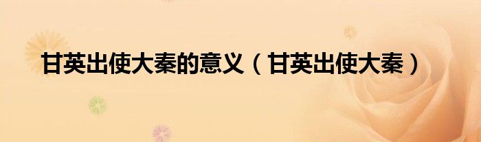 关于甘英出使大秦的意义,甘英出使大秦这个很多人还不知道,今天菲菲来为大家解答以上的问题,现在让我们一起来看看吧!