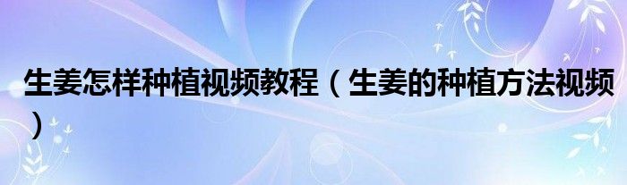 关于生姜怎样种植视频教程,生姜的种植方法视频这个很多人还不知道,今天菲菲来为大家解答以上的问题,现在让我们一起来看看吧!