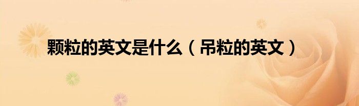 关于颗粒的英文是什么,吊粒的英文这个很多人还不知道,今天菲菲来为大家解答以上的问题,现在让我们一起来看看吧!