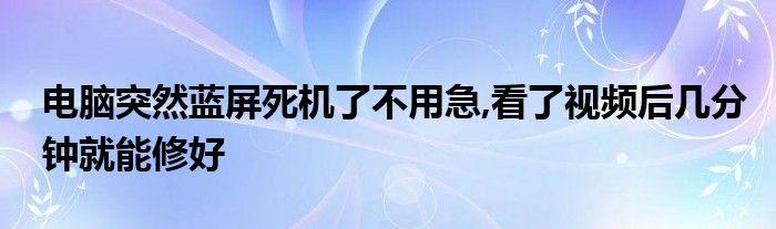 关于电脑突然蓝屏死机了不用急,看了视频后几分钟就能修好这个很多人还不知道,今天菲菲来为大家解答以上的问题,现在让我们一起来看看吧!