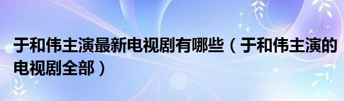 关于于和伟主演最新电视剧有哪些,于和伟主演的电视剧全部这个很多人还不知道,今天菲菲来为大家解答以上的问题,现在让我们一起来看看吧!