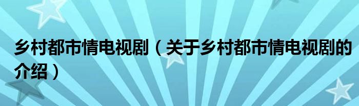 大家好,今天小乐来为大家解答以上的问题。乡村都市情电视剧,关于乡村都市情电视剧的介绍很多人还不知道,现在让我们一起来看看吧!