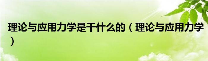 大家好,小晋来为大家解答以下问题,关于理论与应用力学是干什么的,理论与应用力学很多人还不知道,今天让我们一起来看看吧!