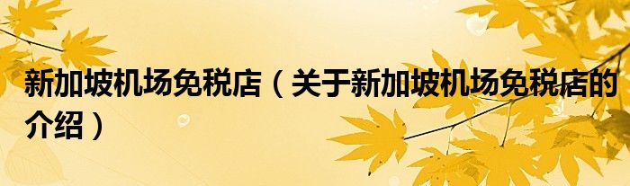 新加坡机场免税店(关于新加坡机场免税店的介绍)