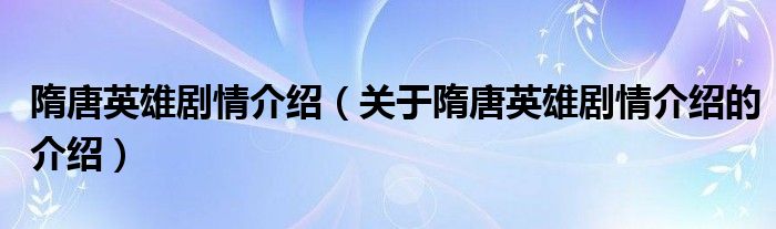 大家好,今天小乐来为大家解答以上的问题。隋唐英雄剧情介绍,关于隋唐英雄剧情介绍的介绍很多人还不知道,现在让我们一起来看看吧!
