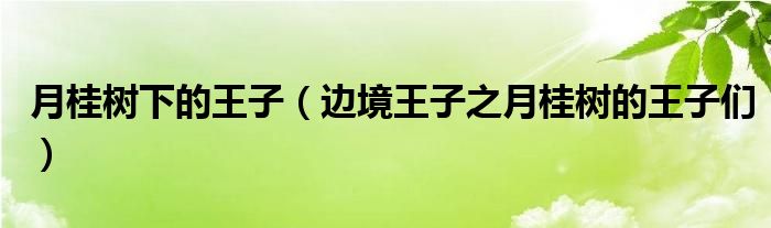 关于月桂树下的王子,边境王子之月桂树的王子们这个很多人还不知道,今天菲菲来为大家解答以上的问题,现在让我们一起来看看吧!