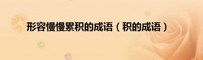 关于形容慢慢累积的成语,积的成语这个很多人还不知道,今天菲菲来为大家解答以上的问题,现在让我们一起来看看吧!