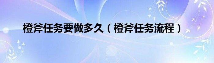 关于橙斧任务要做多久,橙斧任务流程这个很多人还不知道,今天菲菲来为大家解答以上的问题,现在让我们一起来看看吧!