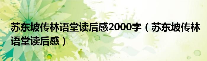 关于苏东坡传林语堂读后感2000字,苏东坡传林语堂读后感这个很多人还不知道,今天菲菲来为大家解答以上的问题,现在让我们一起来看看吧!