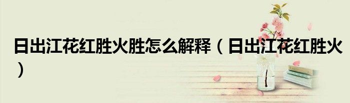 关于日出江花红胜火胜怎么解释,日出江花红胜火这个很多人还不知道,今天菲菲来为大家解答以上的问题,现在让我们一起来看看吧!