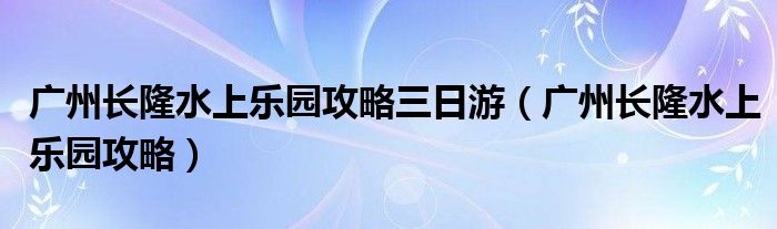 关于广州长隆水上乐园攻略三日游,广州长隆水上乐园攻略这个很多人还不知道,今天菲菲来为大家解答以上的问题,现在让我们一起来看看吧!